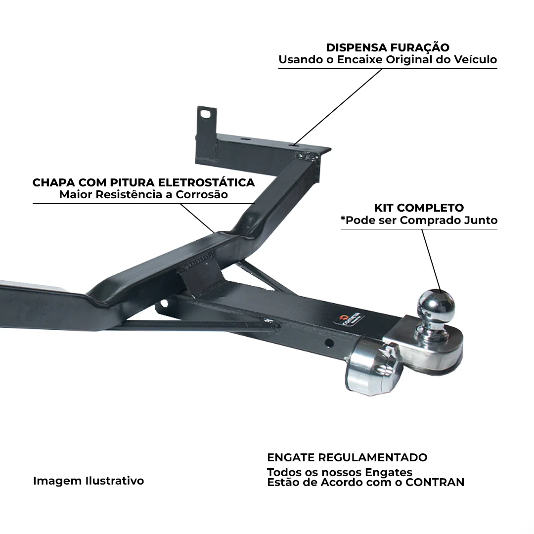 As imagens do kit com bola, tomada de engate e acabamento cromado são ilustrativas e não acompanham o produto. Esses itens podem ser adquiridos separadamente.